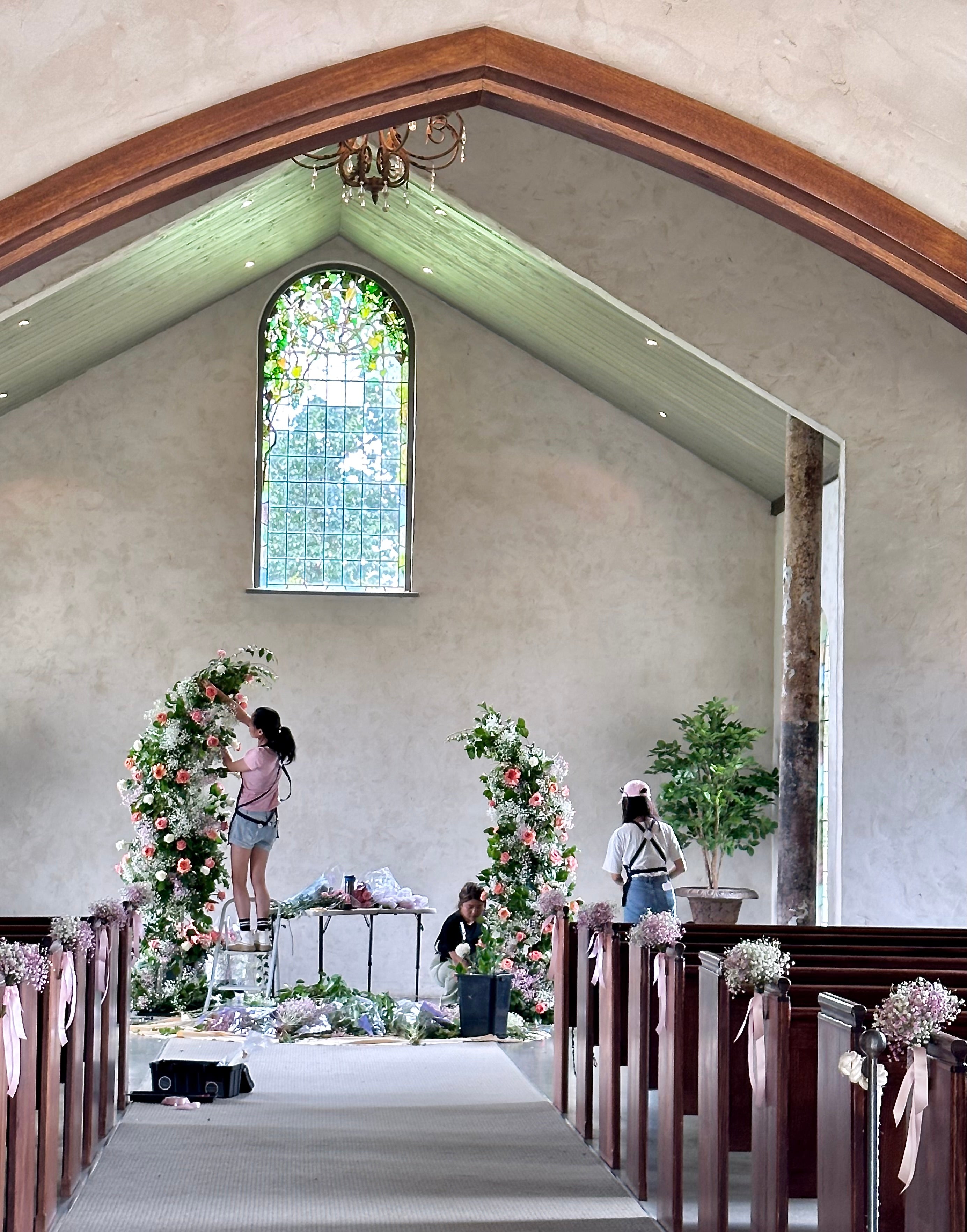 We are experts at creating beautiful floral installations for the service including Flower Arches, Floral Arrangements and Seat Decorations. And at the reception, wedding centre pieces, entrance floral decorations and wall and ceiling decorations.